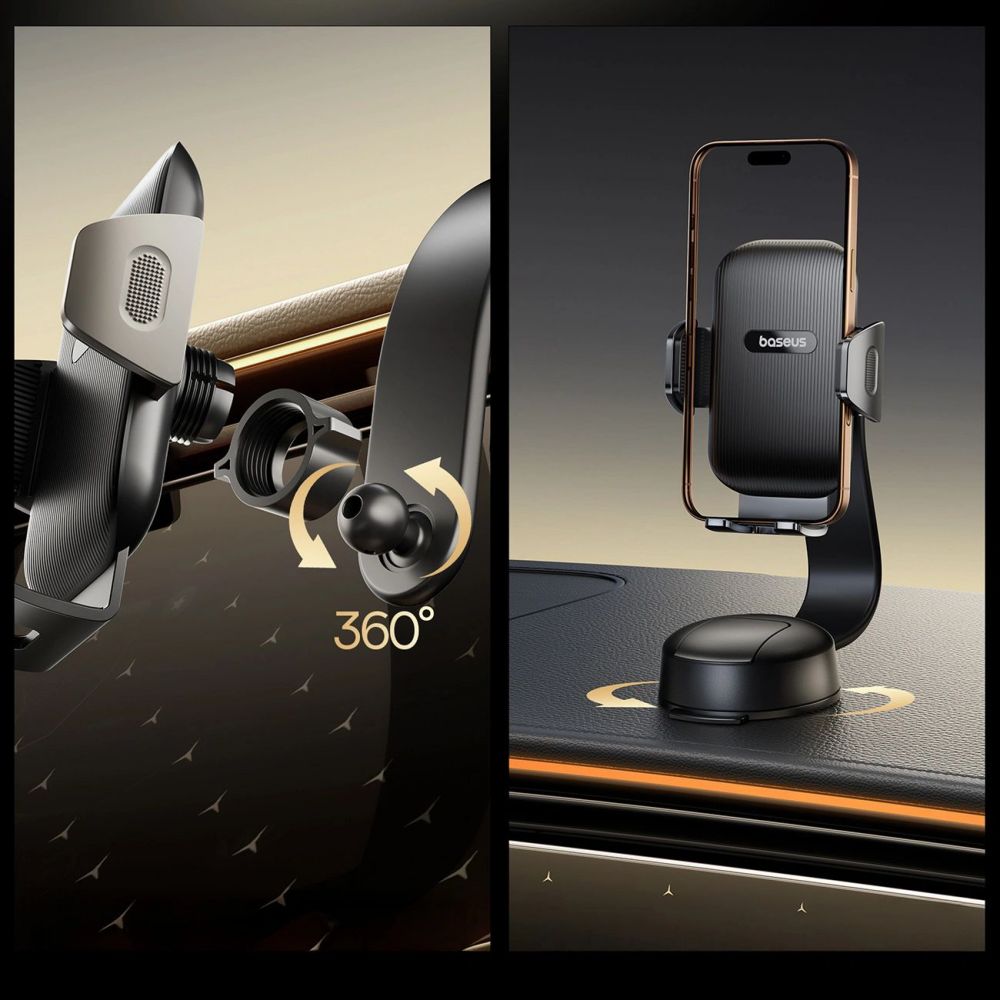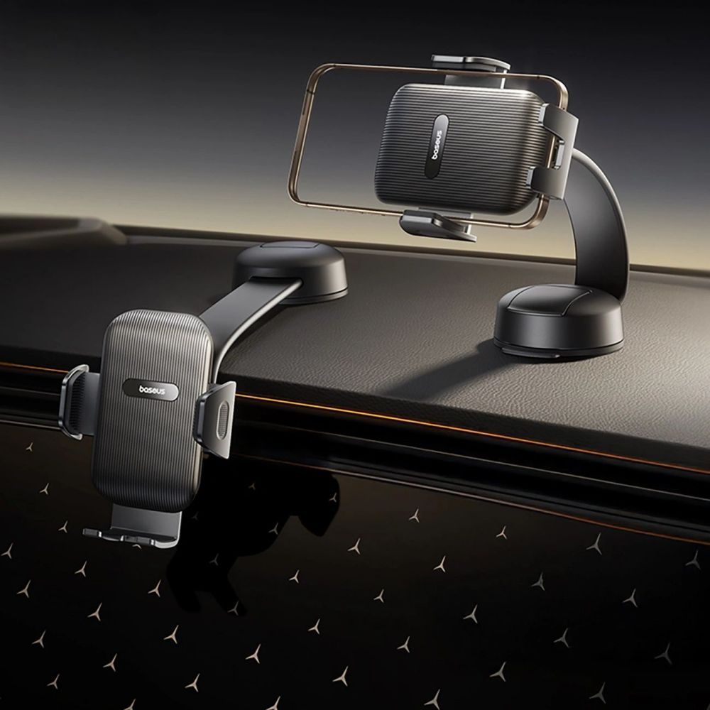 Baseus PrimeTrip C03 — це надійний автомобільний тримач на приладову панель із вакуумною присоскою, автоматичним пневматичним затискачем для керування однією рукою та гнучким регулюванням кута огляду для безпечного водіння.