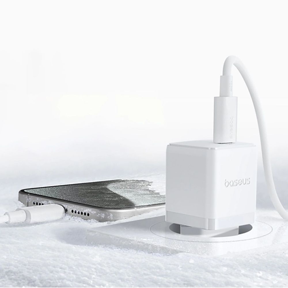 Мережевий зарядний пристрій Baseus Palm Fast Charger 1C 20W EU Moon White (with Baseus Mini White Cable USB-C to USB-C 60W (20V/3A) 1m Moon White)