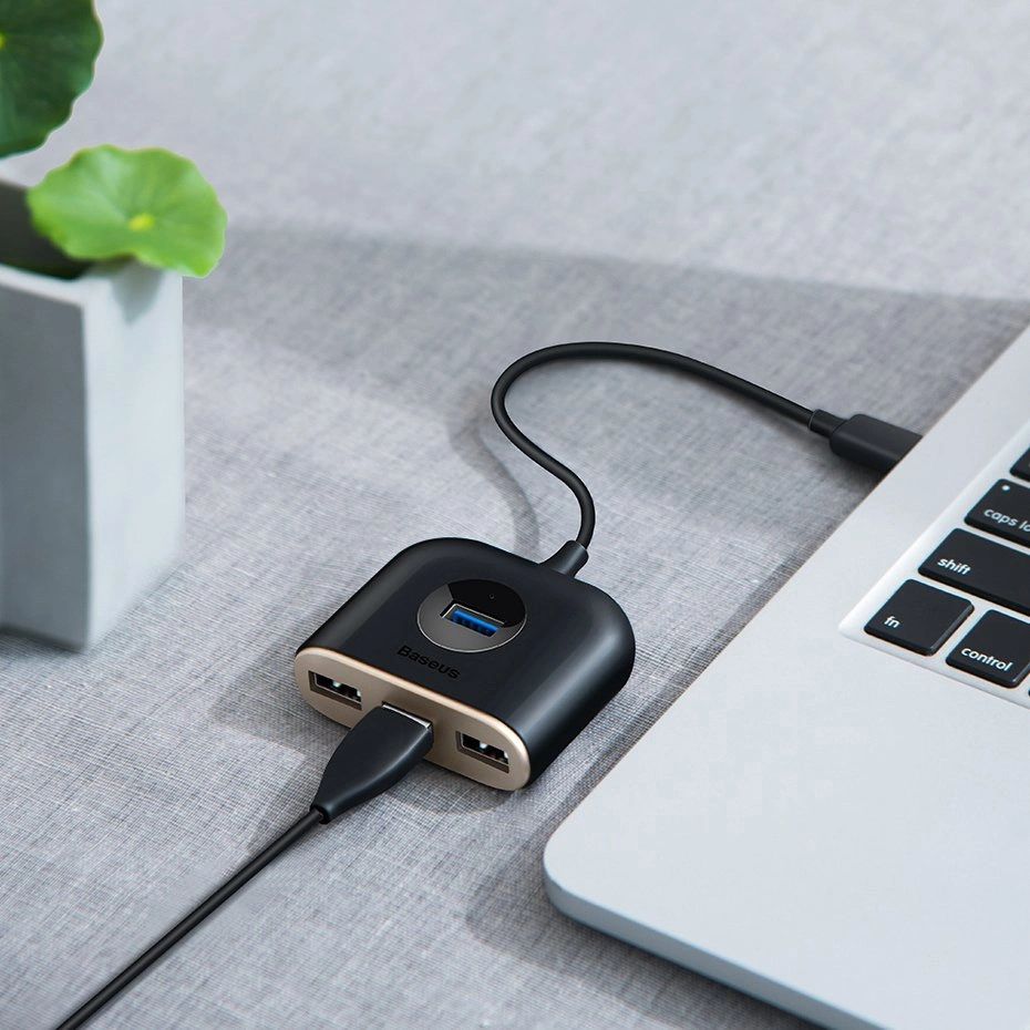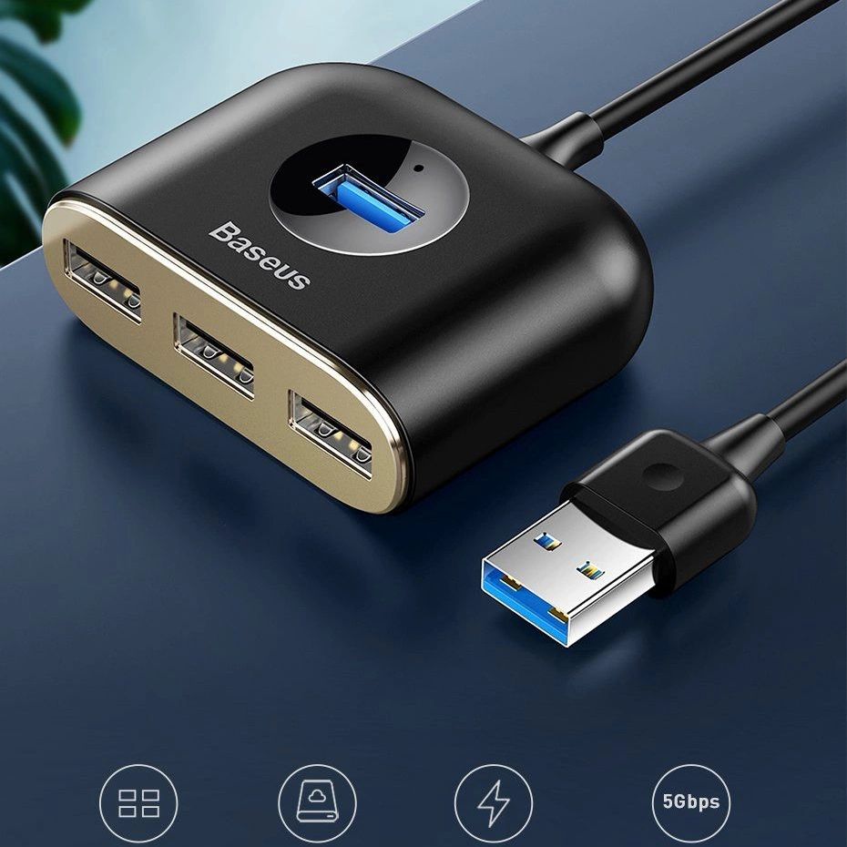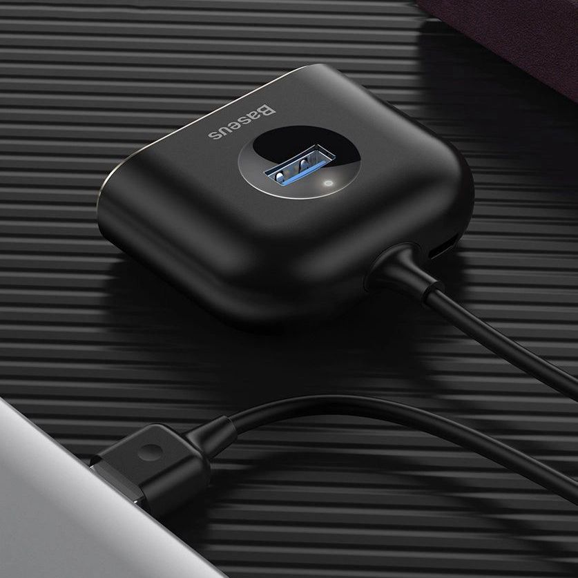 Baseus Square HUB — це функціональний 4-портовий USB-розгалужувач із метровим кабелем, що забезпечує швидкість передачі даних до 5 Гбіт/с та підтримує живлення потужних периферійних пристроїв через додатковий роз'єм Micro USB.