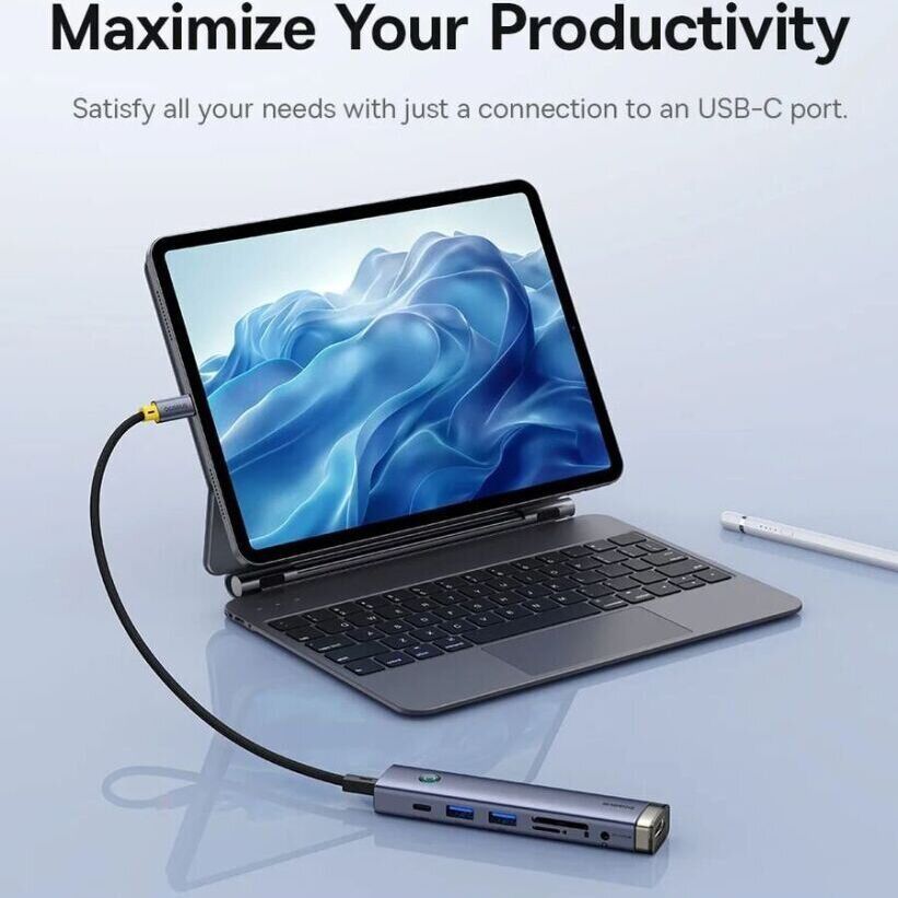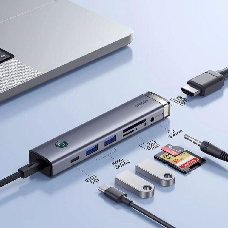 Док-станція Baseus UltraJoy Series із 7 портами HUB – це сучасний технологічний продукт від бренду Baseus, розроблений для задоволення різноманітних потреб користувачів у розширенні можливостей підключення для роботи та розваг. Завдяки ідеальному поєднанню потужної функціональності та вишуканого дизайну, цей пристрій не лише забезпечує зручність, але й підвищує щоденну ефективність.