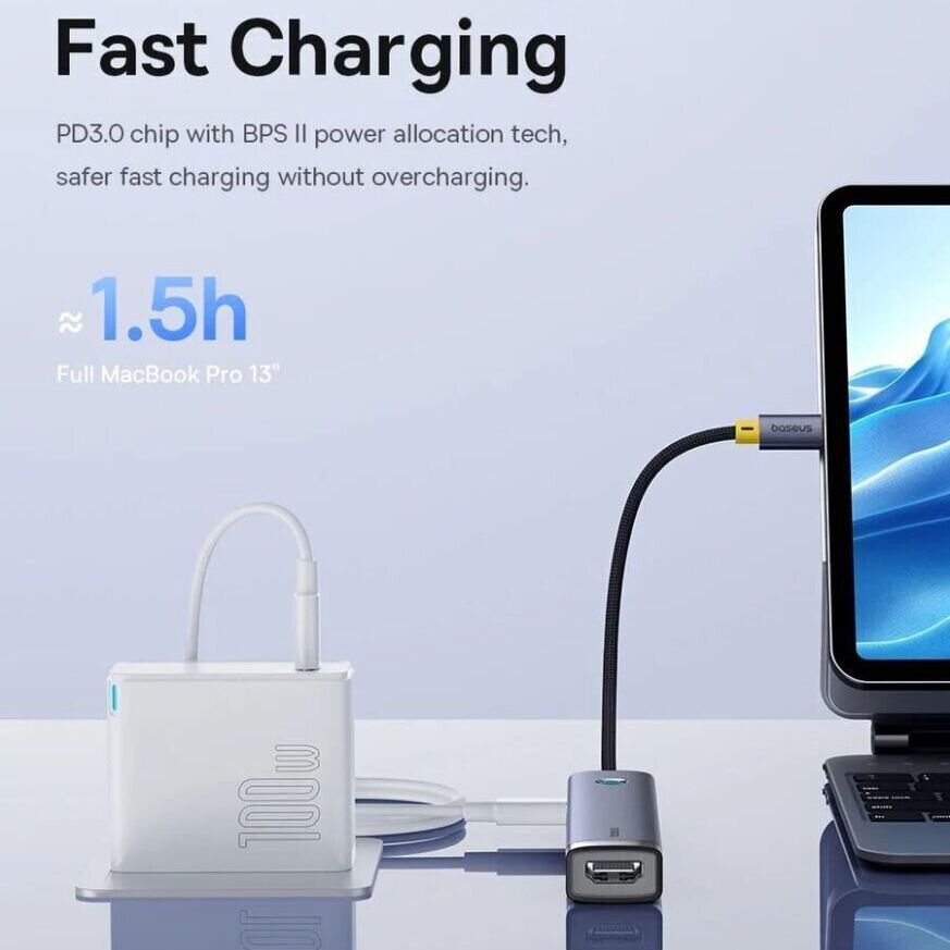 - енергія на максимум (100W PD): заряджайте свій MacBook або Windows-ноутбук на повній швидкості прямо через хаб, одночасно використовуючи всі інші порти;